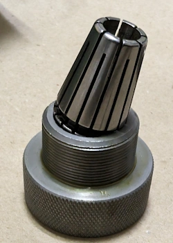 ドリルの直径に合ったコレットを選び、コレットホルダーに「カチッ」とはまるように押し込みます。(コレットの溝とホルダー内部の突起を合わせる)