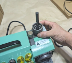 次に、研磨するドリルの直径に合わせて、本体の「芯厚アジャスター」のダイヤルを調整します。