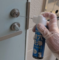 洗浄剤の噴射:鍵穴に洗浄剤を噴射します。(製品の指示に従い、適切な量を噴射してください)